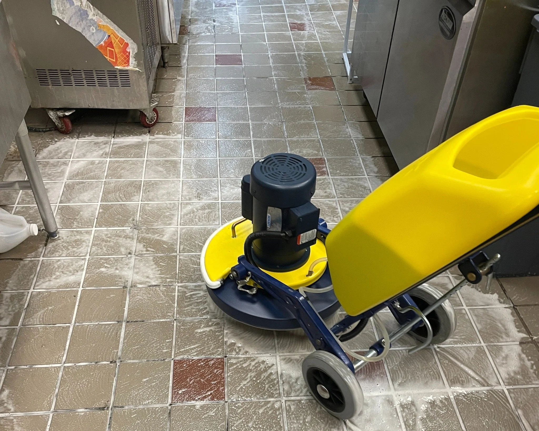 We start by evaluating the floor condition, traffic wear, and existing finish. If needed, we strip away old wax and buildup, prepare the surface, and apply new finish in clean, even coats. For maintenance work, we tailor the process to the floor’s current condition and service needs.